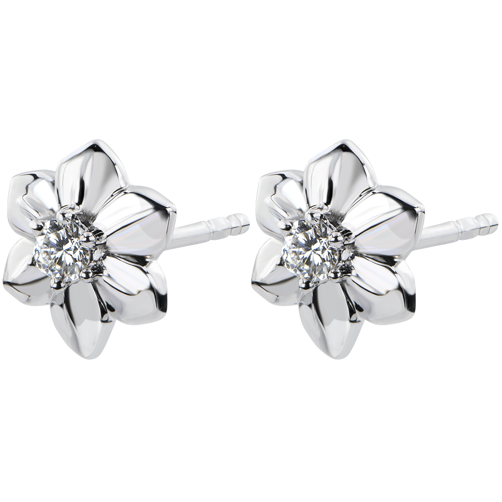 Un diamant îmbogăţit cu 6 petale reprezintă cerceii cu şurub Dalhia, delicaţi şi feminini.