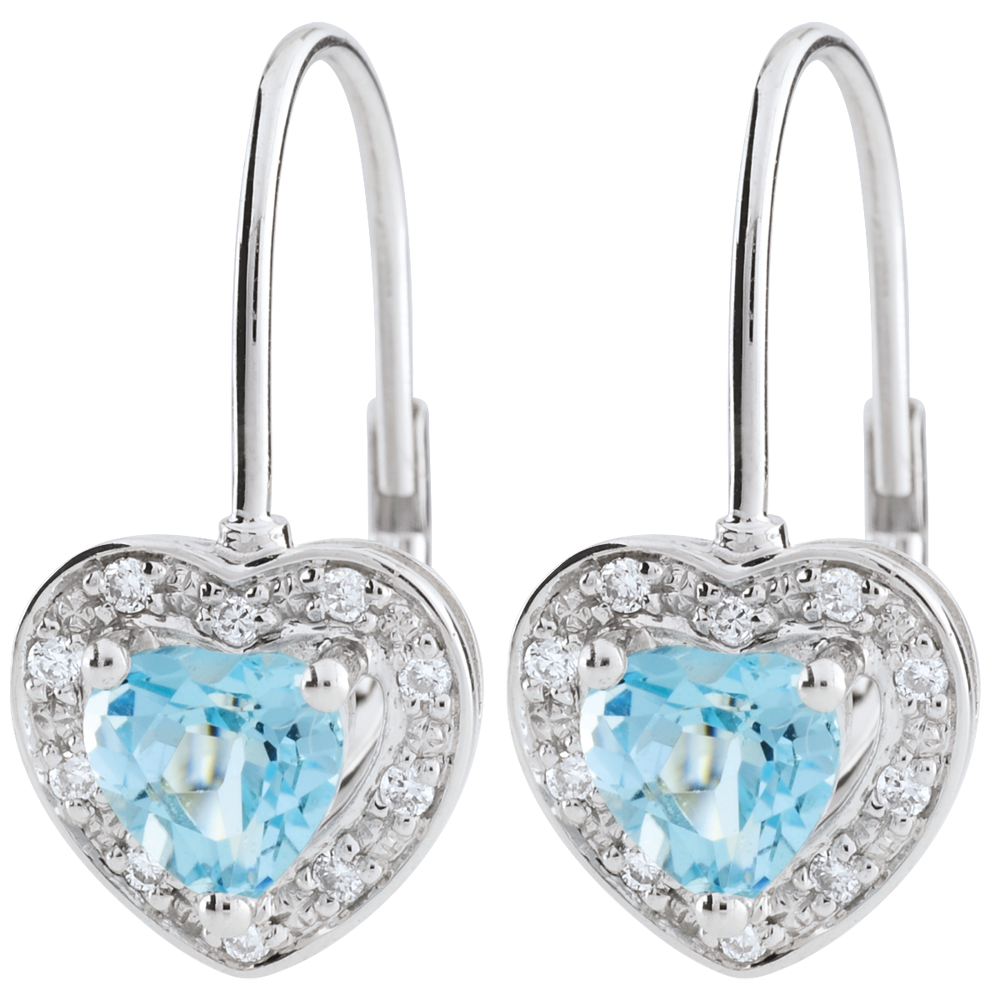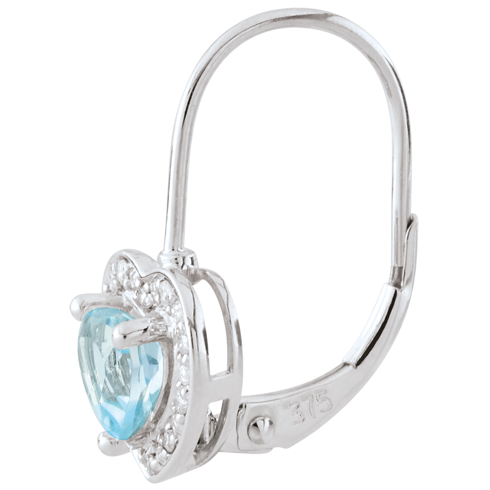 Cercei Inimă Fermecată - topaz albastru - aur alb de 18K