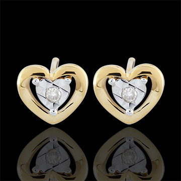 O inimă din aur faţetat poartă un diamant în centrul unei inimi de aur galben lustruit.