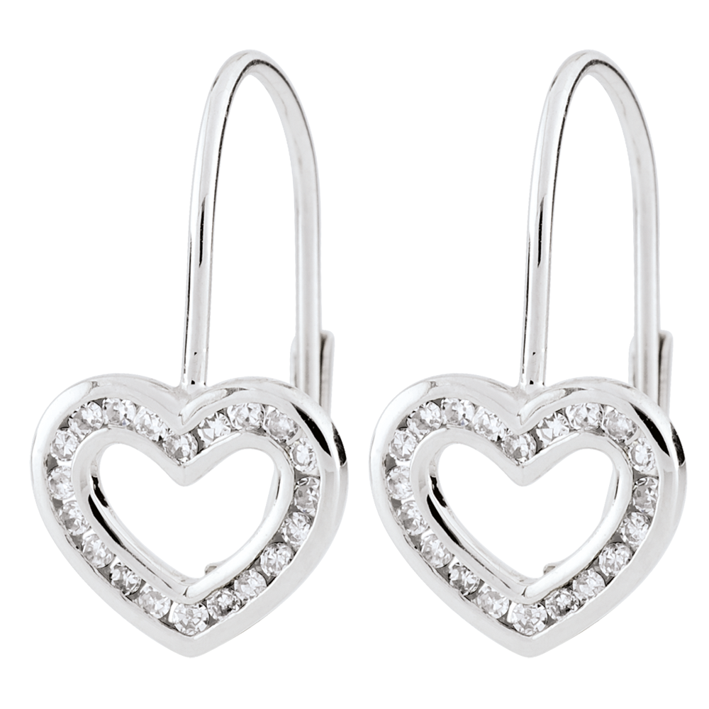 Cercei Inimi Téa - 40 diamante - aur alb de 9K