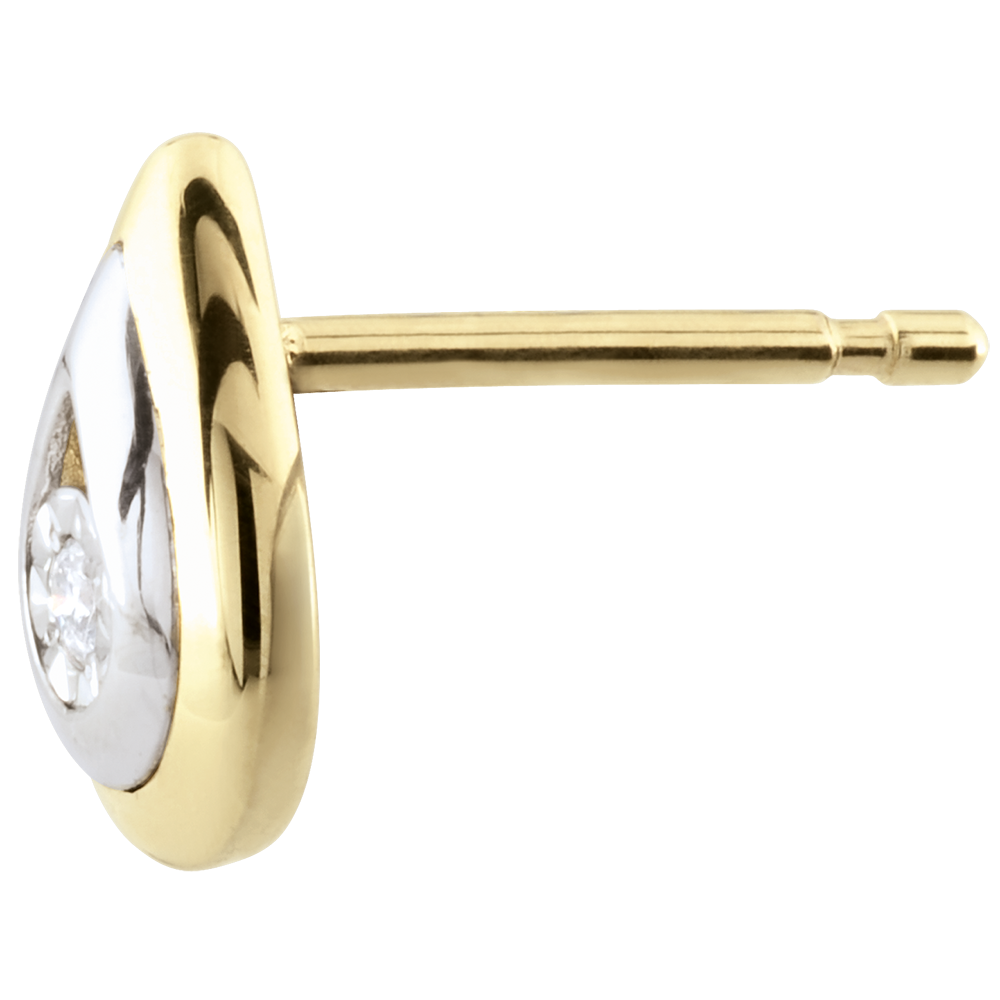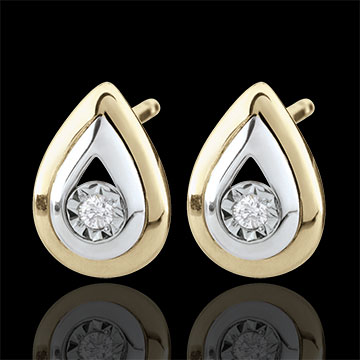 Două lacrimi delicate din aur alb şi aur galben a căror scânteie este un diamant situat în centru.