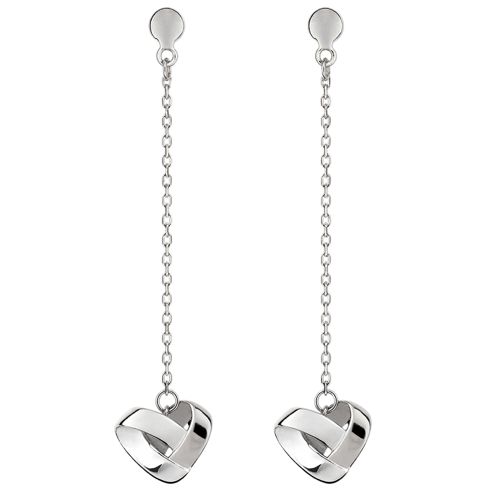 Cercei lungi Inimă Origami – aur alb de 18 karate