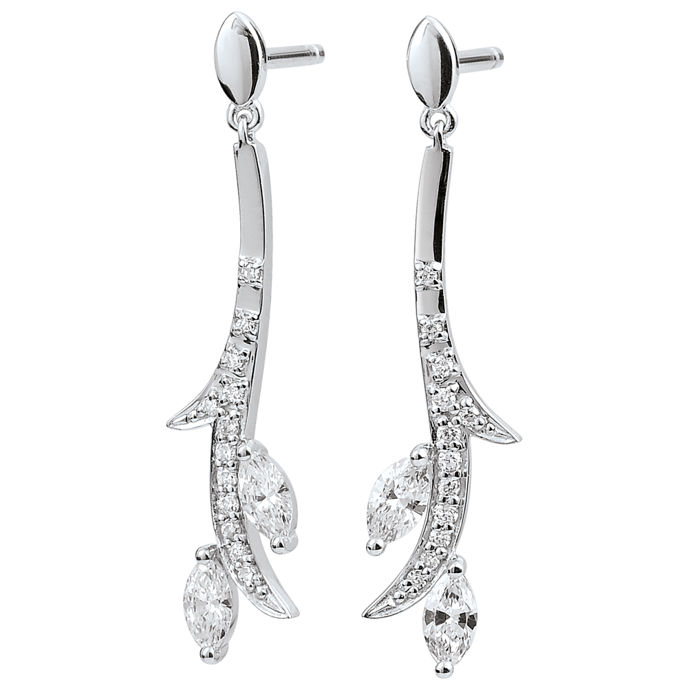 GRăDINă FERMECATă NR. 7Cercei Frunze - Aur alb 18 carate - Diamant ID : 3526