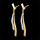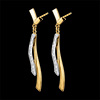 O panglică pavată de diamante prevăzută deasupra unei a doua panglici de aur galben într-o pereche de cercei lungi lejeri şi feminini.