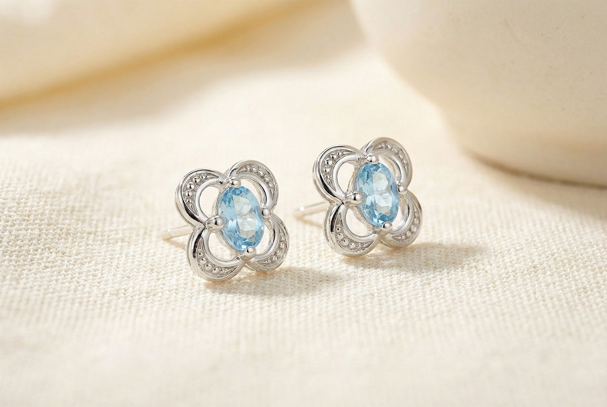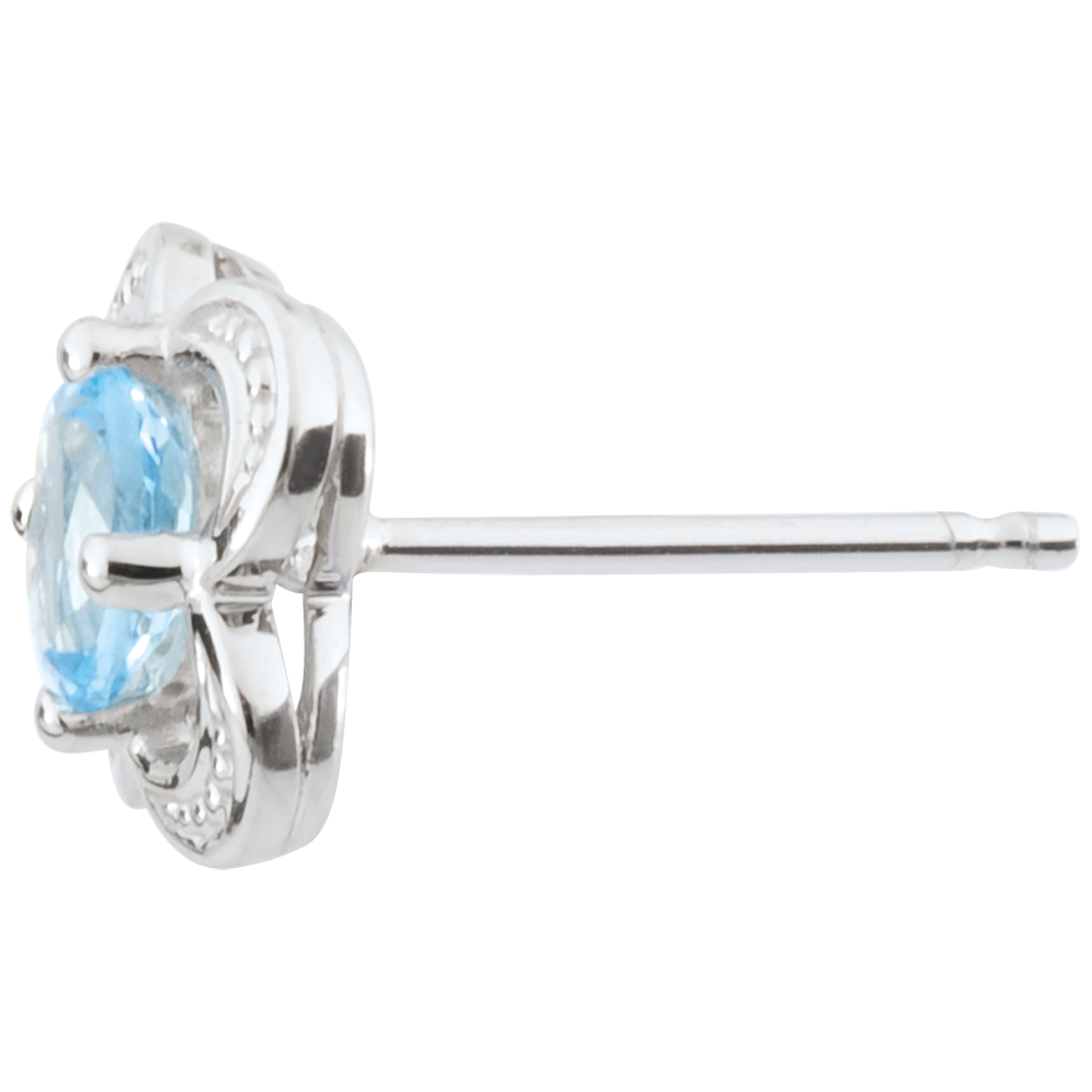 PASăRE DIN PARADIS NR. 32Cercei cu şurub Flori - Aur alb 9 carate - Topaz albastru ID : 2468 5