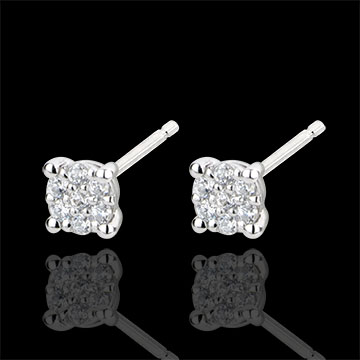 O miriadă de diamante precum stelele în rendez-vous formează un solitaire îndrăzneţ pentru fiecare dintre cei doi cercei.