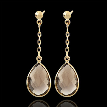 Cercei Narcisă - quartz fumuriu - aur galben de 9K