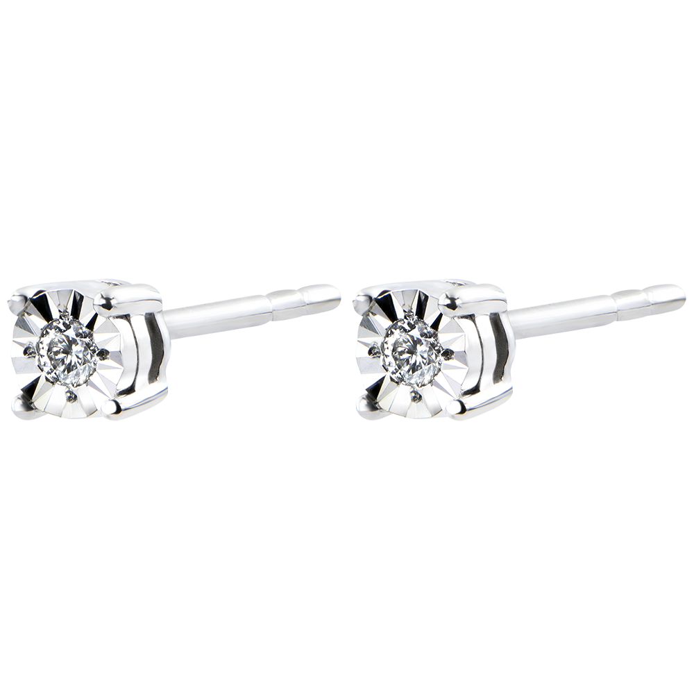 Întreaga precizie şi strălucire a diamantelor încrustate cu gheruţe, într-o pereche de cercei cu şurub, sobri şi atemporali.