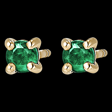 Gloria și esența a două smaralde fixate în deplină sobrietate pe o pereche de cercei cu șurub din aur galben. O bijuterie clasică și atemporală în același timp pentru o notă de culoare.