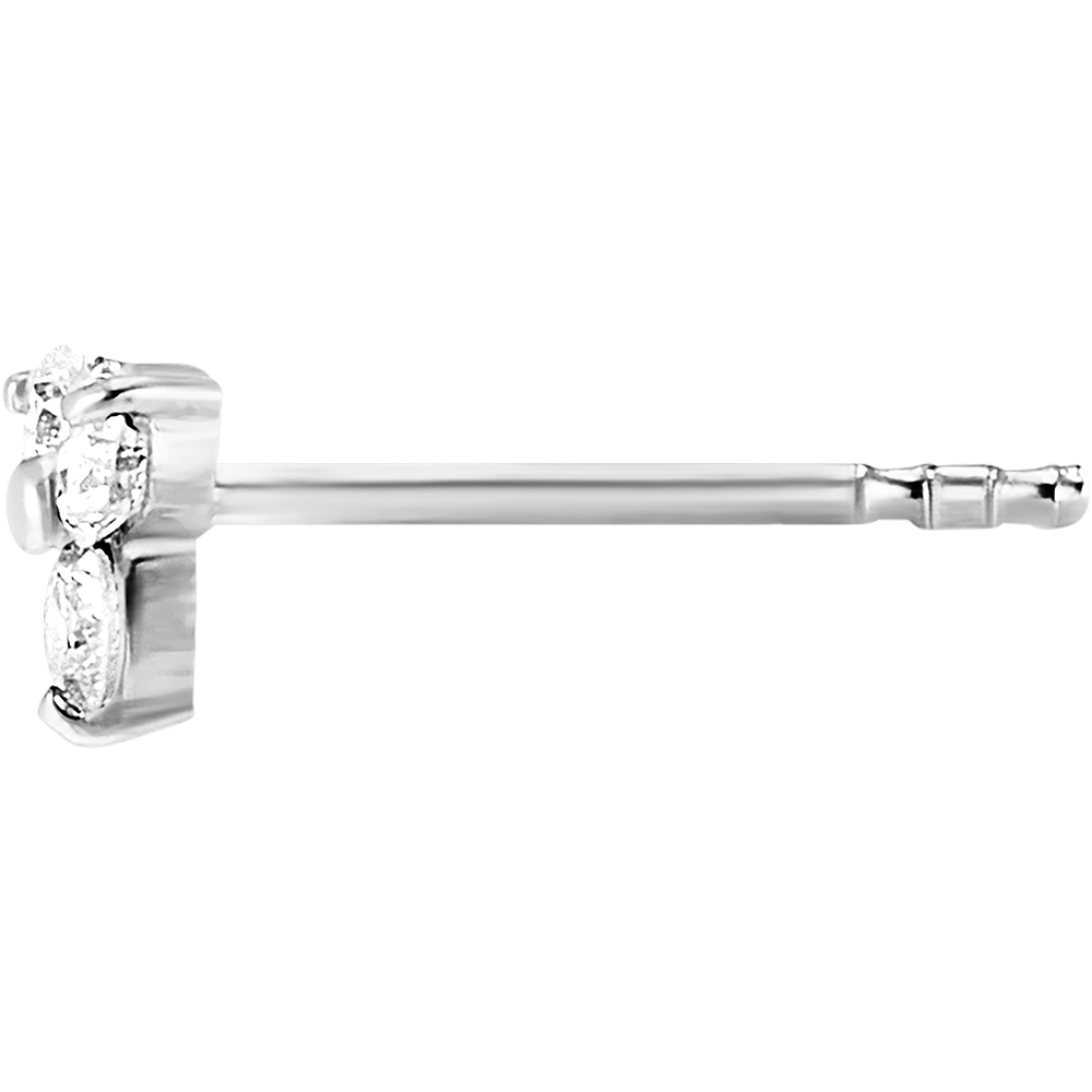 O pereche de cercei cu șurub din aur alb presărată cu 3 diamante. Delicatețe și strălucire pentru acest model ce poate fi purtat zi de zi.
