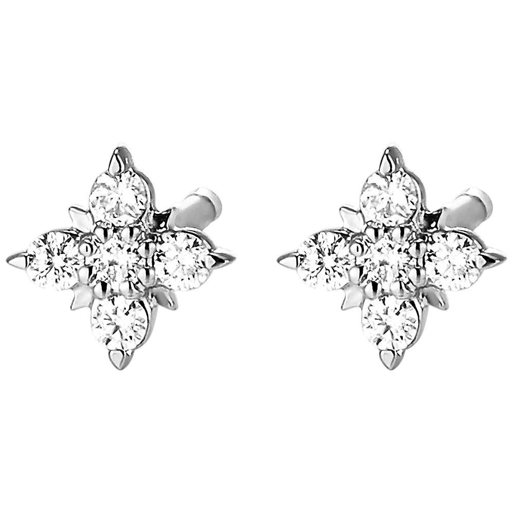 Cercei Prospețime - Petale prețioase - aur alb de 9 carate și diamante