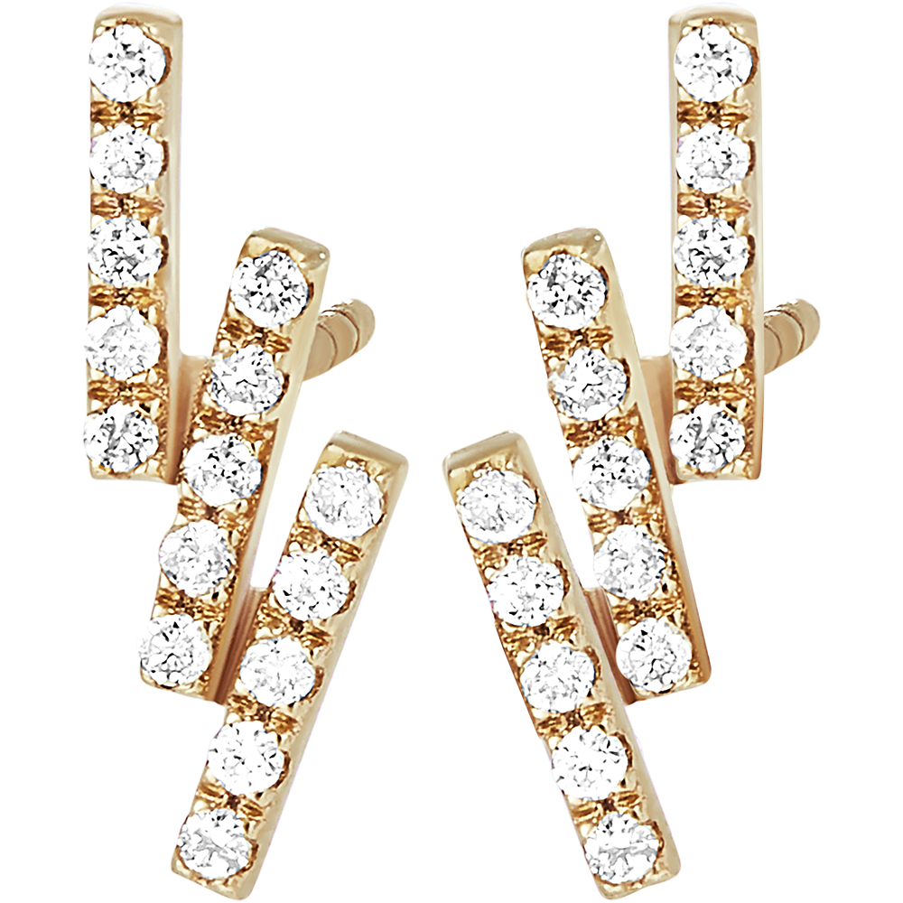 O pereche de cercei cu șurub din aur galben presărată cu 30 de diamante asemeni unui foc de artificii strălucitor. Un model modern și atemporal.