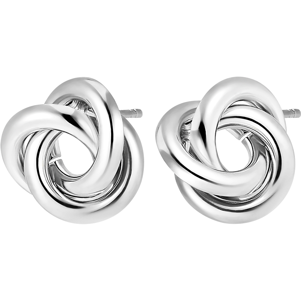 Asocierea echilibrată a trei inele din aur alb pentru o pereche atemporală de cercei.