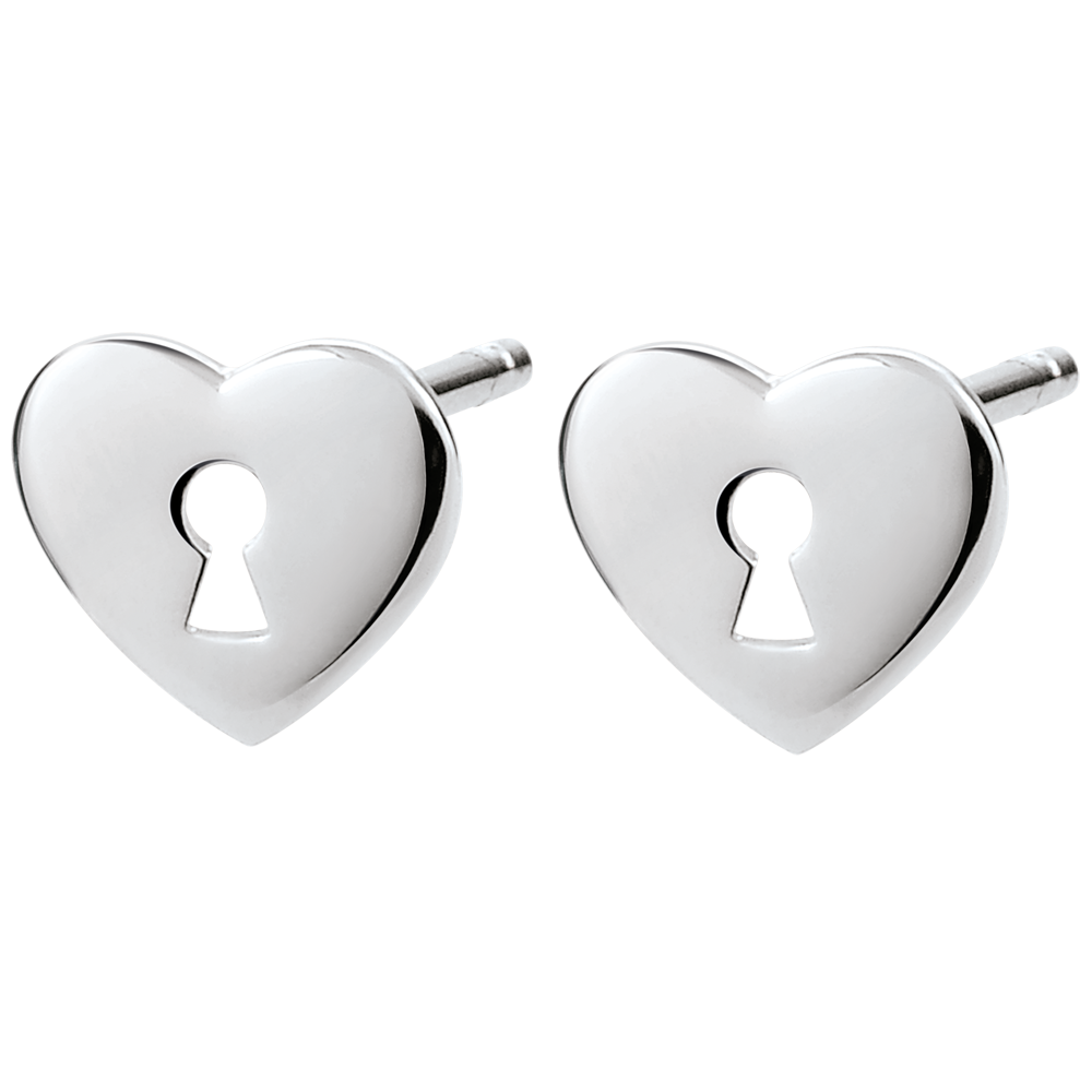 Cercei Secret Preţios - Inimă - aur alb de 9K