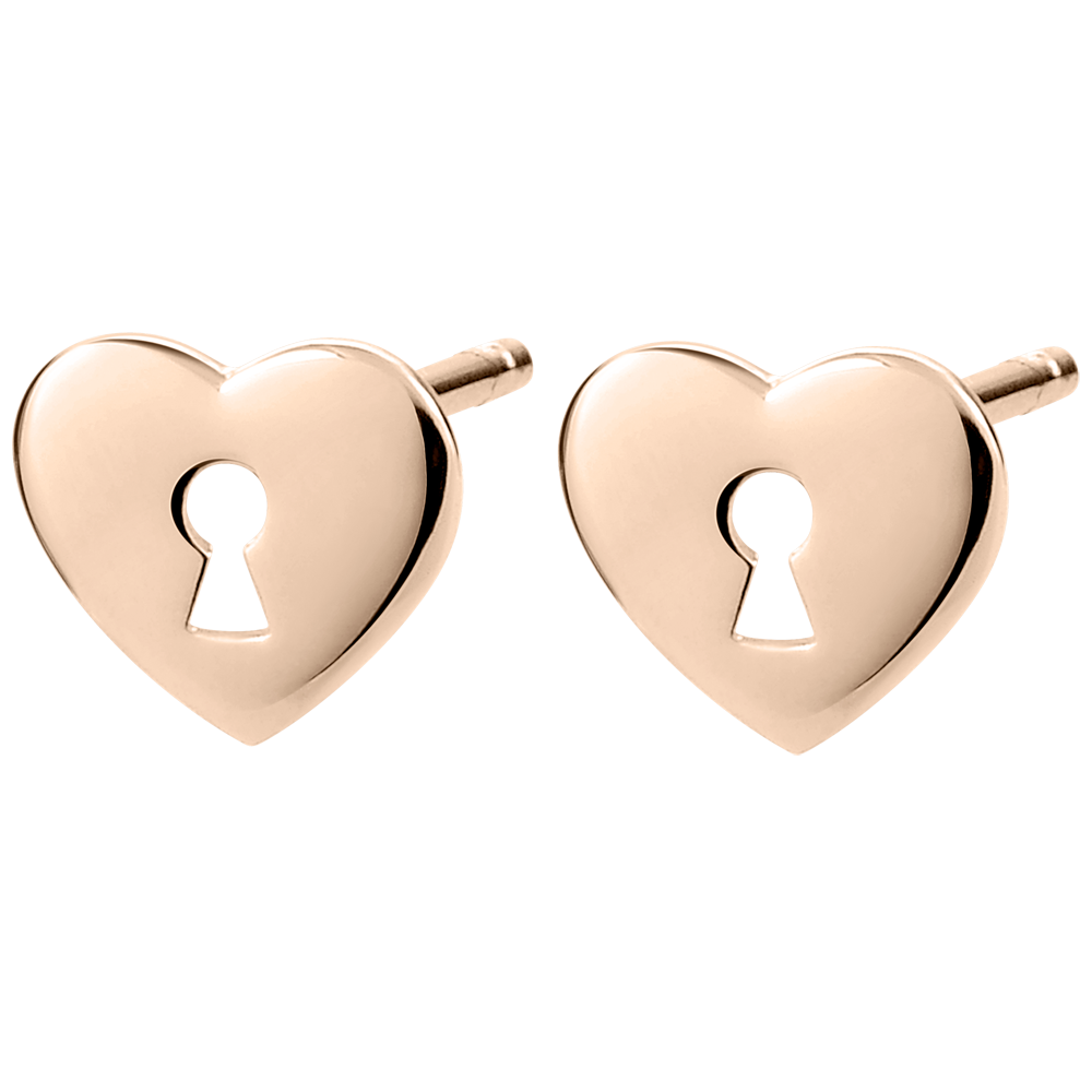 Nu, sunt fără pietre, punând în valoare designul inimă cu încuietoare din aur roz.