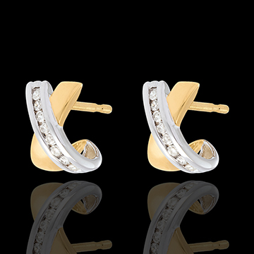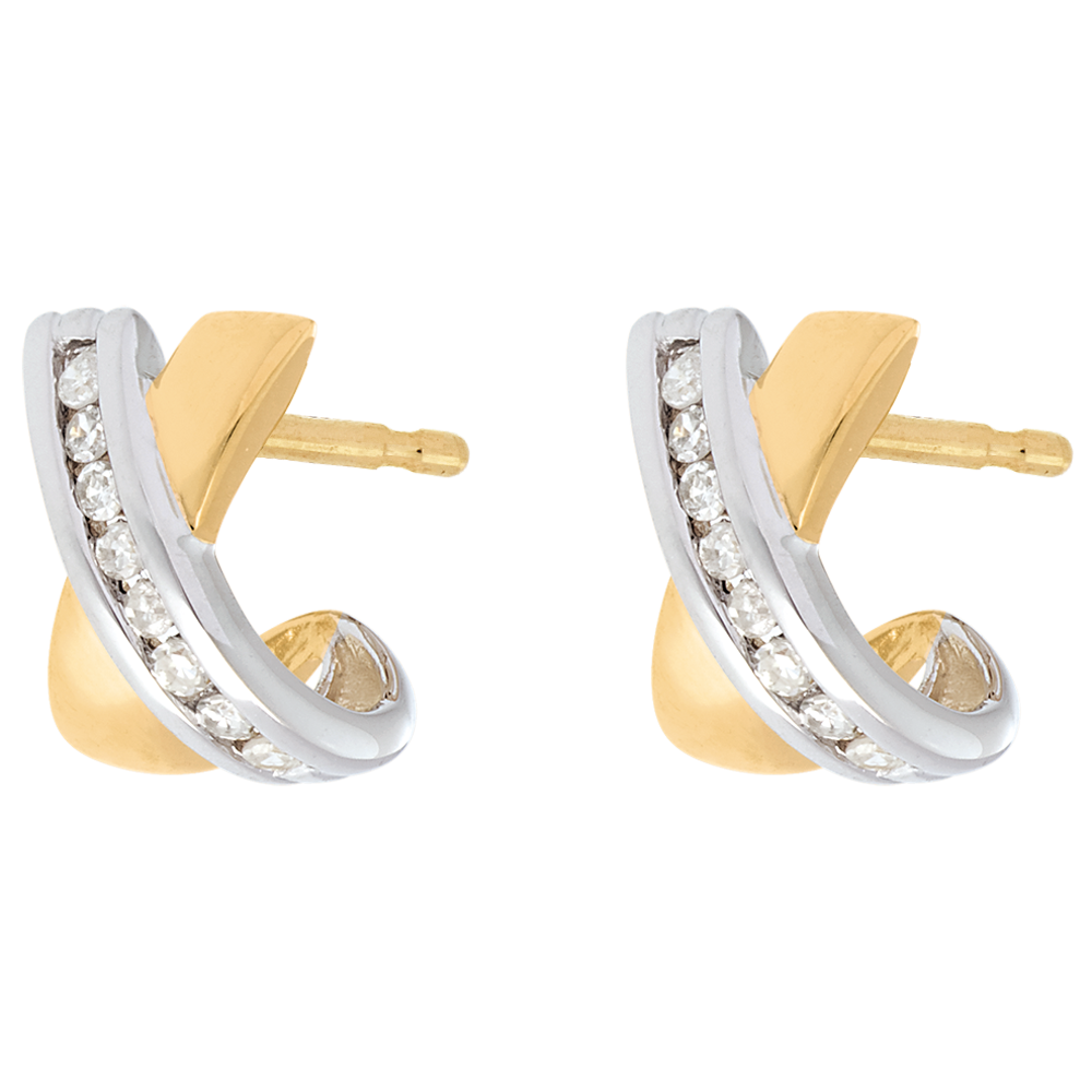 Un tandem de semiluni împletite, aur galben şi aur alb, încrustate cu diamante.