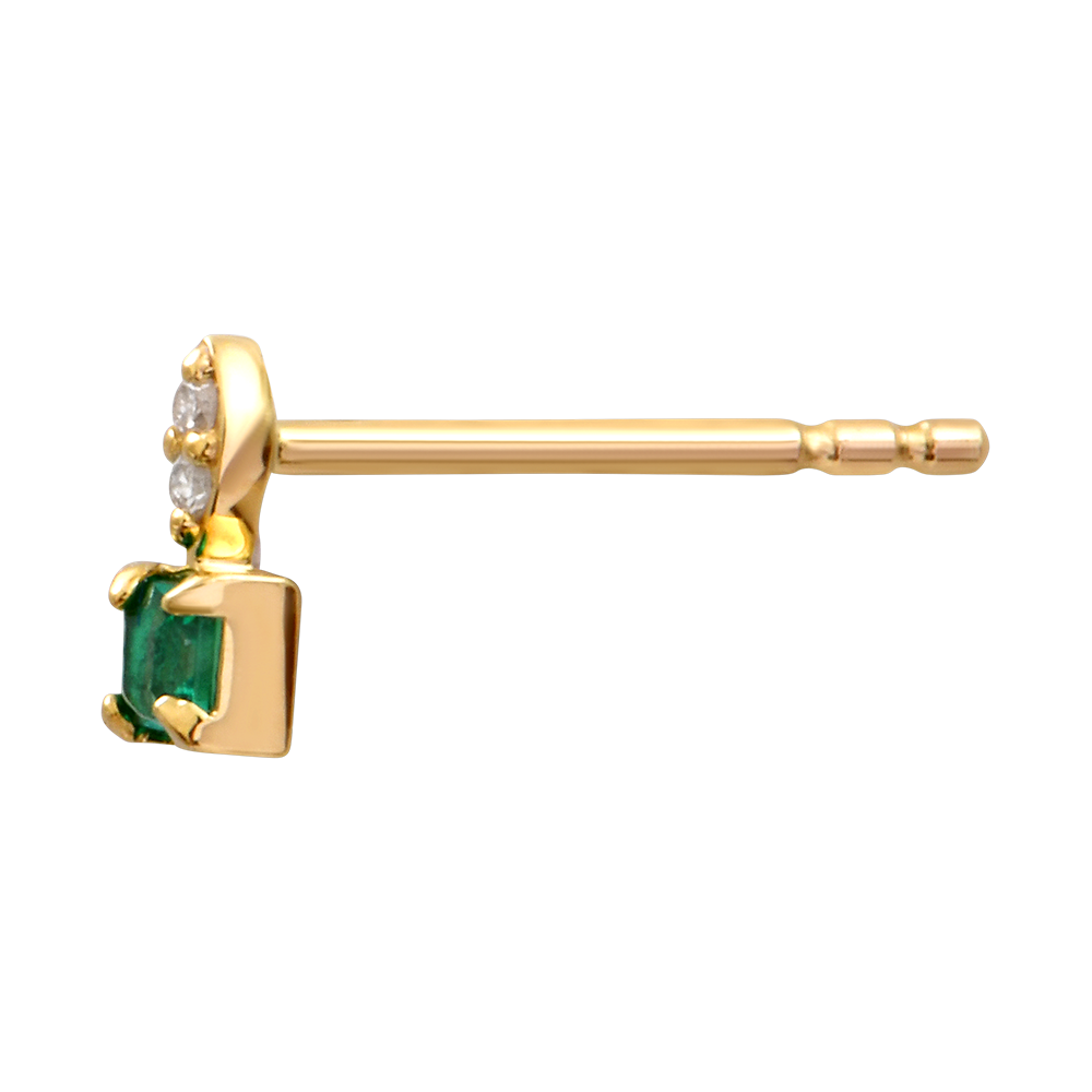 PASăRE DIN PARADIS NR. 52Cercei cu şurub - Aur galben 9 carate - Smarald sintetic, Diamante de laborator ID : 1586