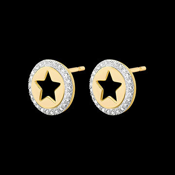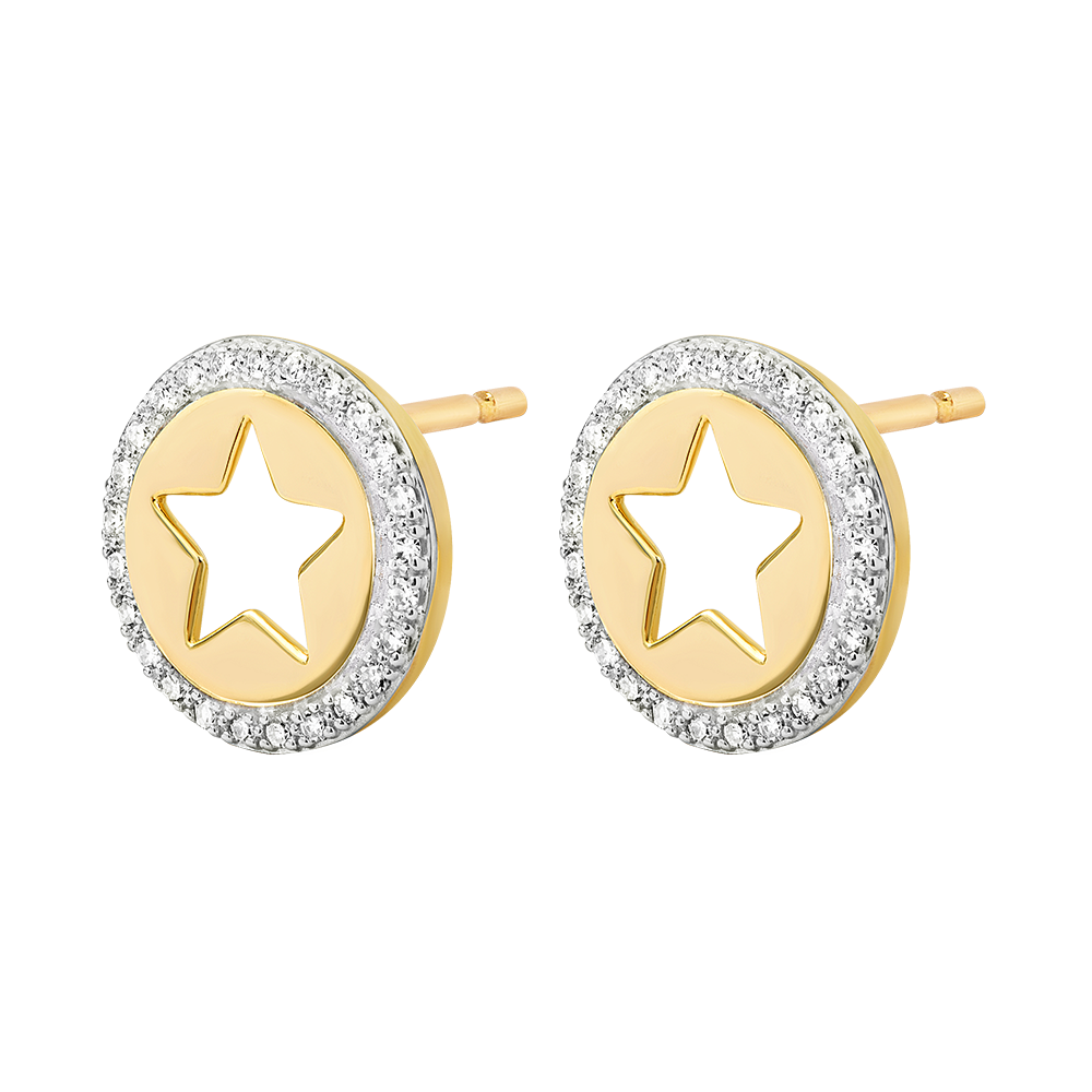 PROSPEţIME NR. 102Cercei cu şurub Stea - Aur alb şi aur galben 9 carate - Diamant ID : 7395