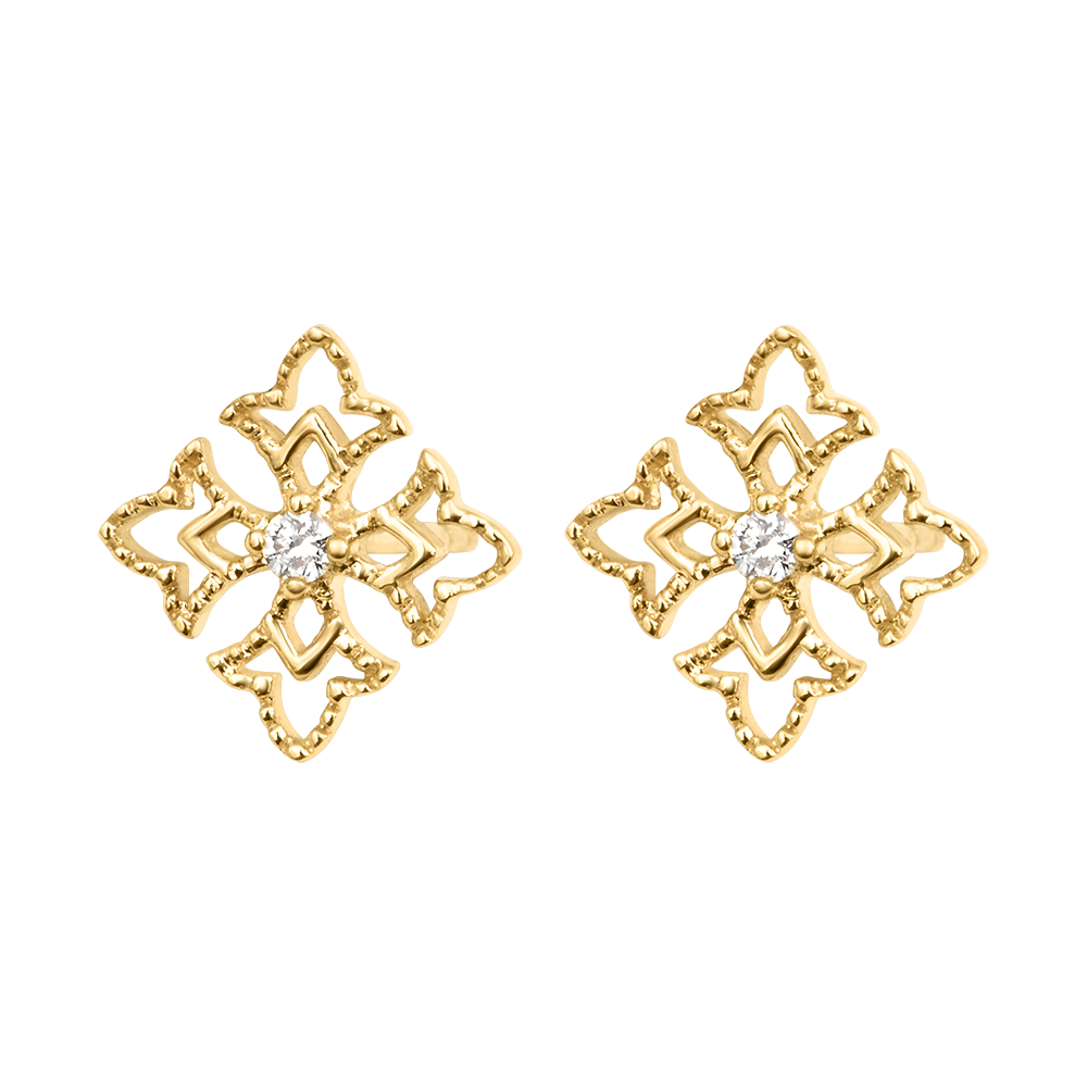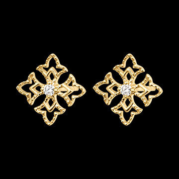 PROSPEţIME NR. 104Cercei cu şurub Flori - Aur galben 9 carate - Diamante de laborator ID : 3975