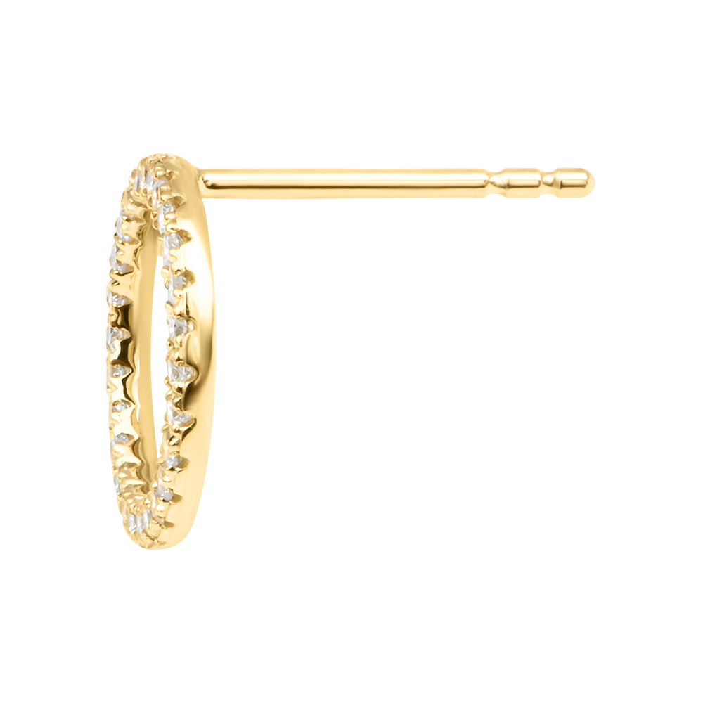 Un cerc perfect decorat cu diamante strălucitoare pentru o eleganță subtilă.Cercei stud moderni și mereu la modă, potriviți atât pentru zi cât și pentru seară.