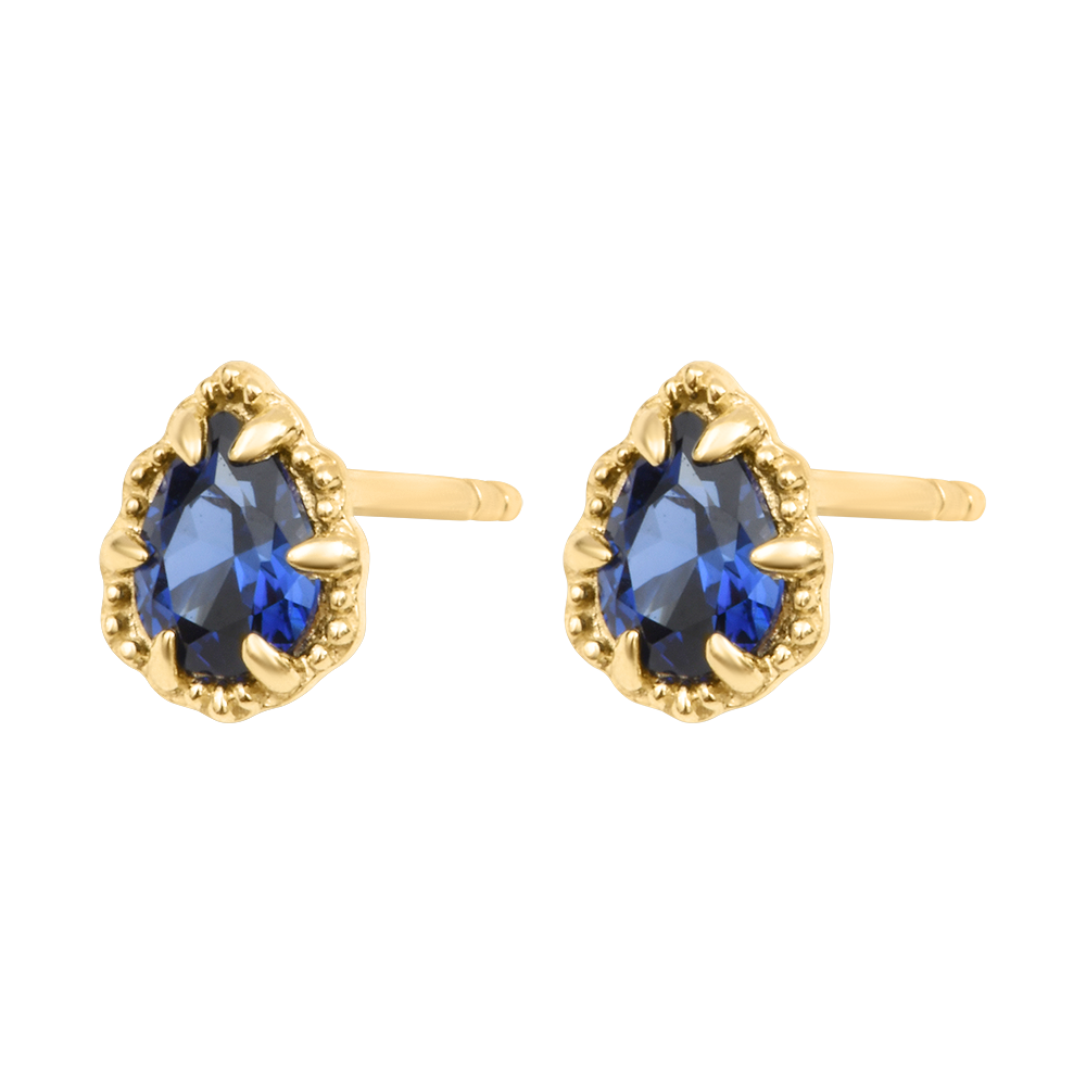 Cercei tip buton Céphira – Aur galben 9K și safire sintetice