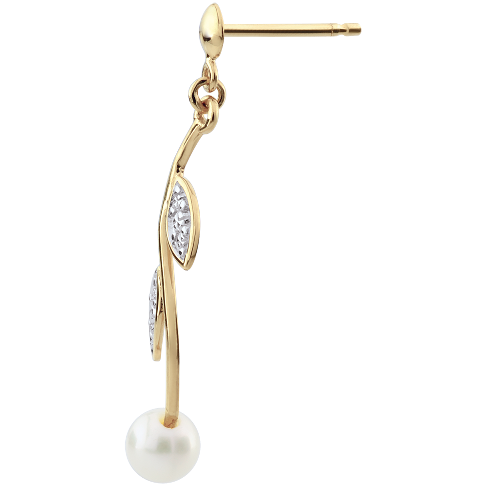 Cerceii sunt împodobiți cu două perle naturale de calitate Very Good, cu o greutate totală de 0,98 carate, oferind o strălucire subtilă și armonizând cu aurul alb și galben.
