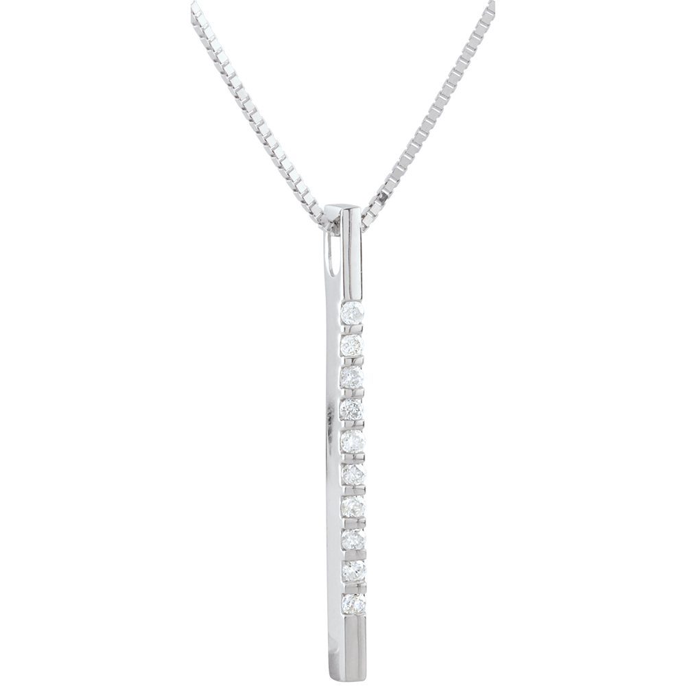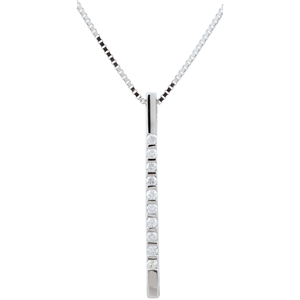 O linie dreaptă încrustată de diamante vă va ilumina decolteul. O bijuterie foarte modernă, atemporală şi elegantă.