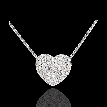 Colier inimă din aur alb de 18K pavat - 0.85 carate - 50 de diamante