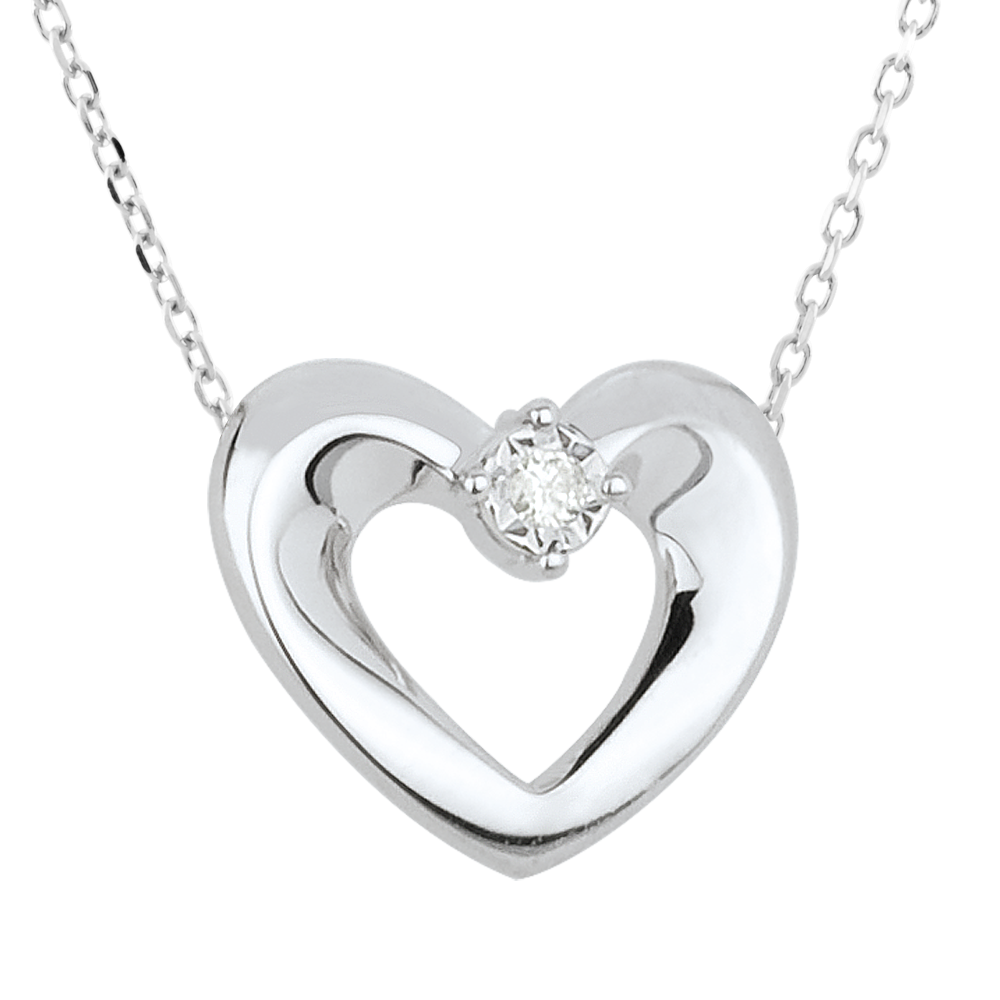 Colier inimă drăguţă aur alb de 9K şi diamant - 45 cm