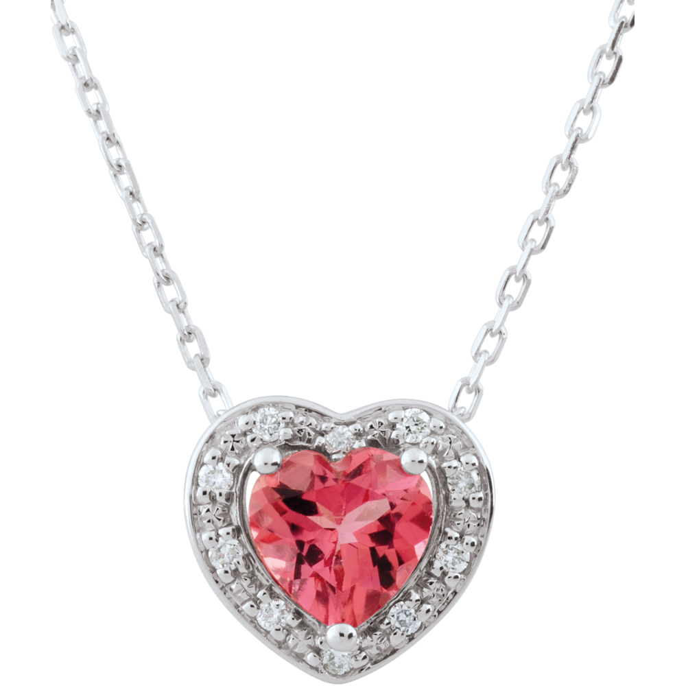 Colier Inimă Fermecată - turmalin roz - aur alb de 18K