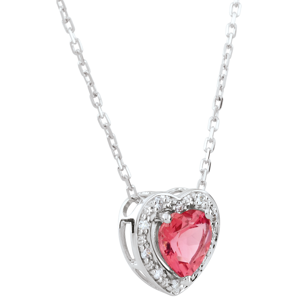 Colier Inimă Fermecată - turmalin roz - aur alb de 9K