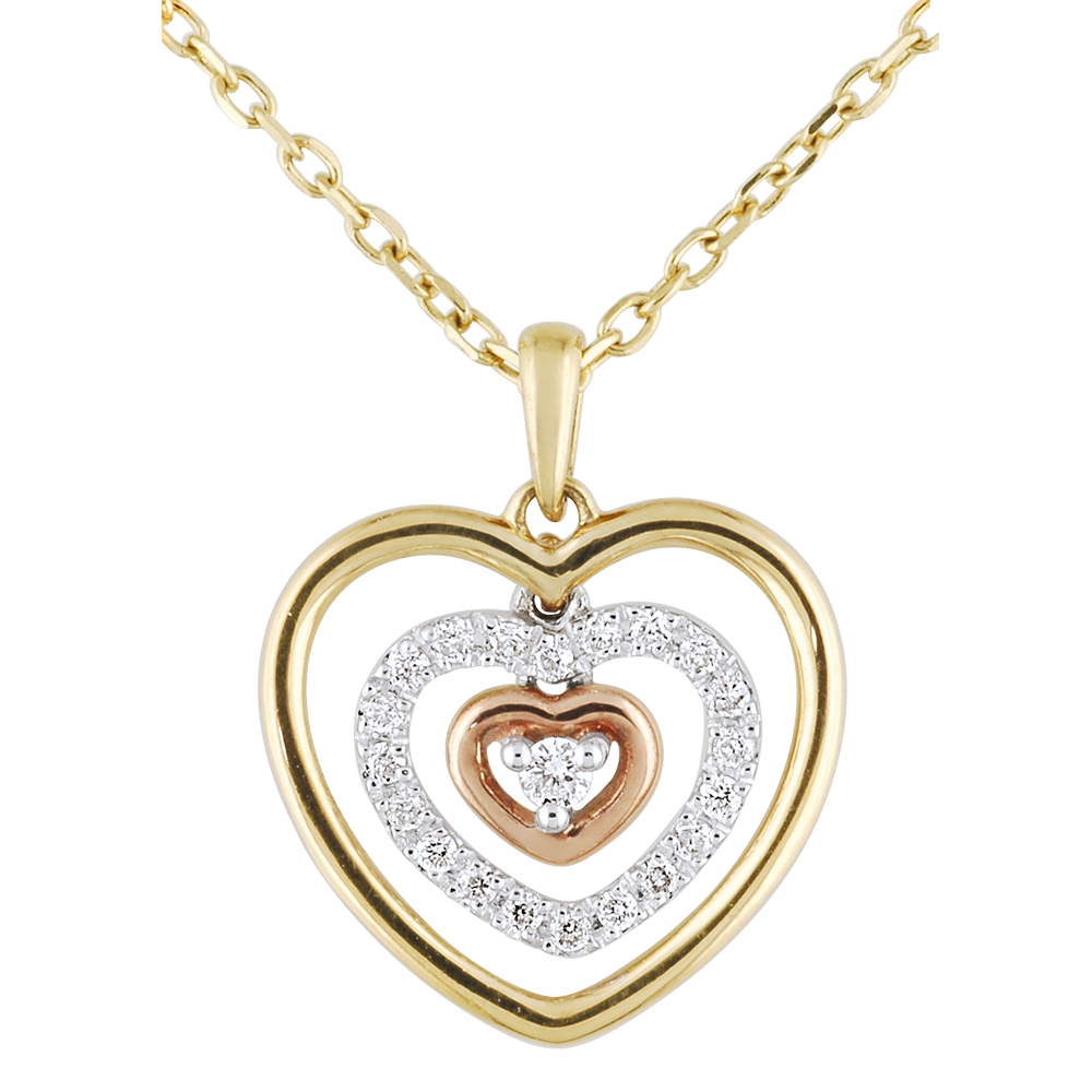 O trilogie de inimi în abis, mobile şi diafane, cu o inimă din aur galben, o inimă pavată cu diamante şi cu un diamant central încrustat în 3 gheruţe înconjurat de o inimă din aur roz.