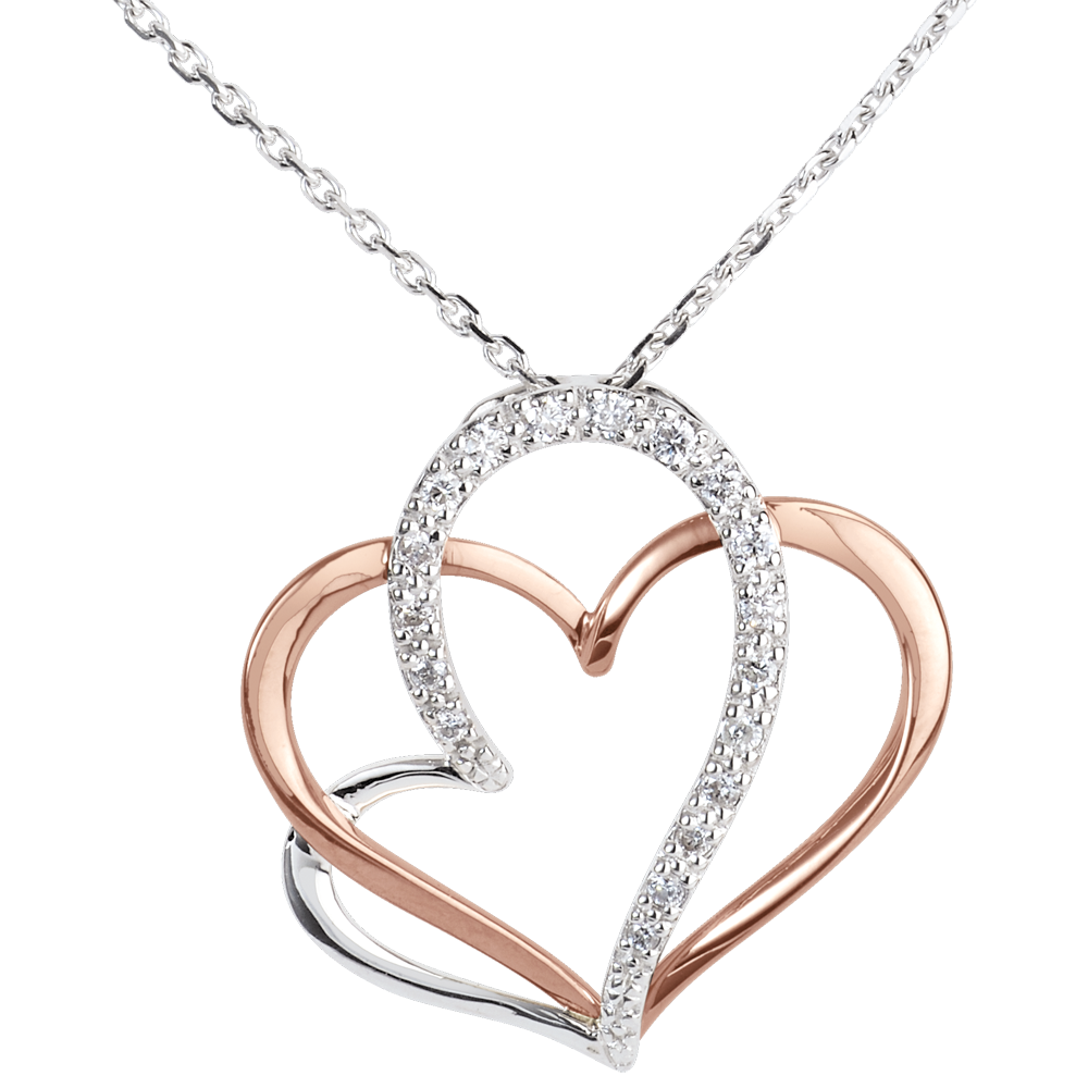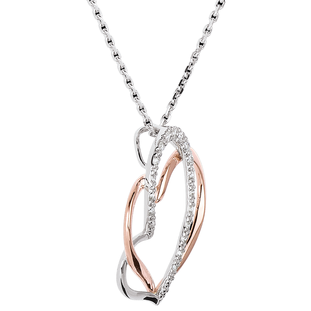 Un colier numai bucle tandre şi îndrăgostite ce îmbină cu delicateţe aurul roz şi aurul alb pavat.