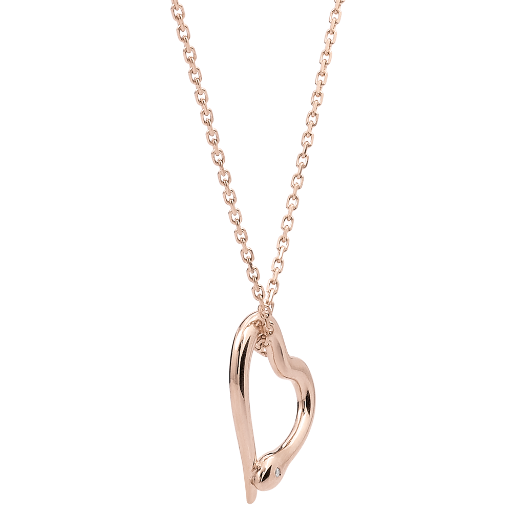 Un şarpe de aur roz se încolăceşte în jurul unui lanţ fin şi feminin pentru a forma la final o inimă.