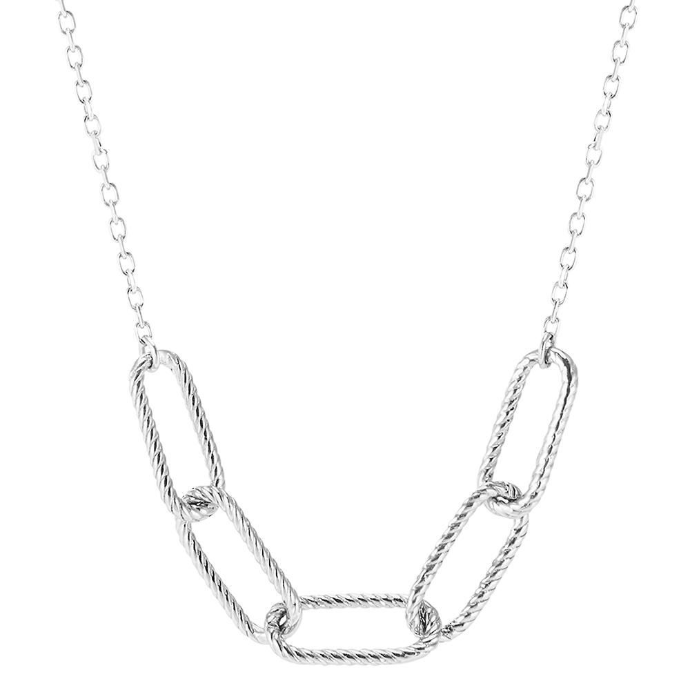 Lanțul are lungimea de 45 cm cu un inel de reglare la 42 cm, oferind o potrivire confortabilă și ajustabilă. O piesă sobră care simbolizează conexiunea și rafinamentul.