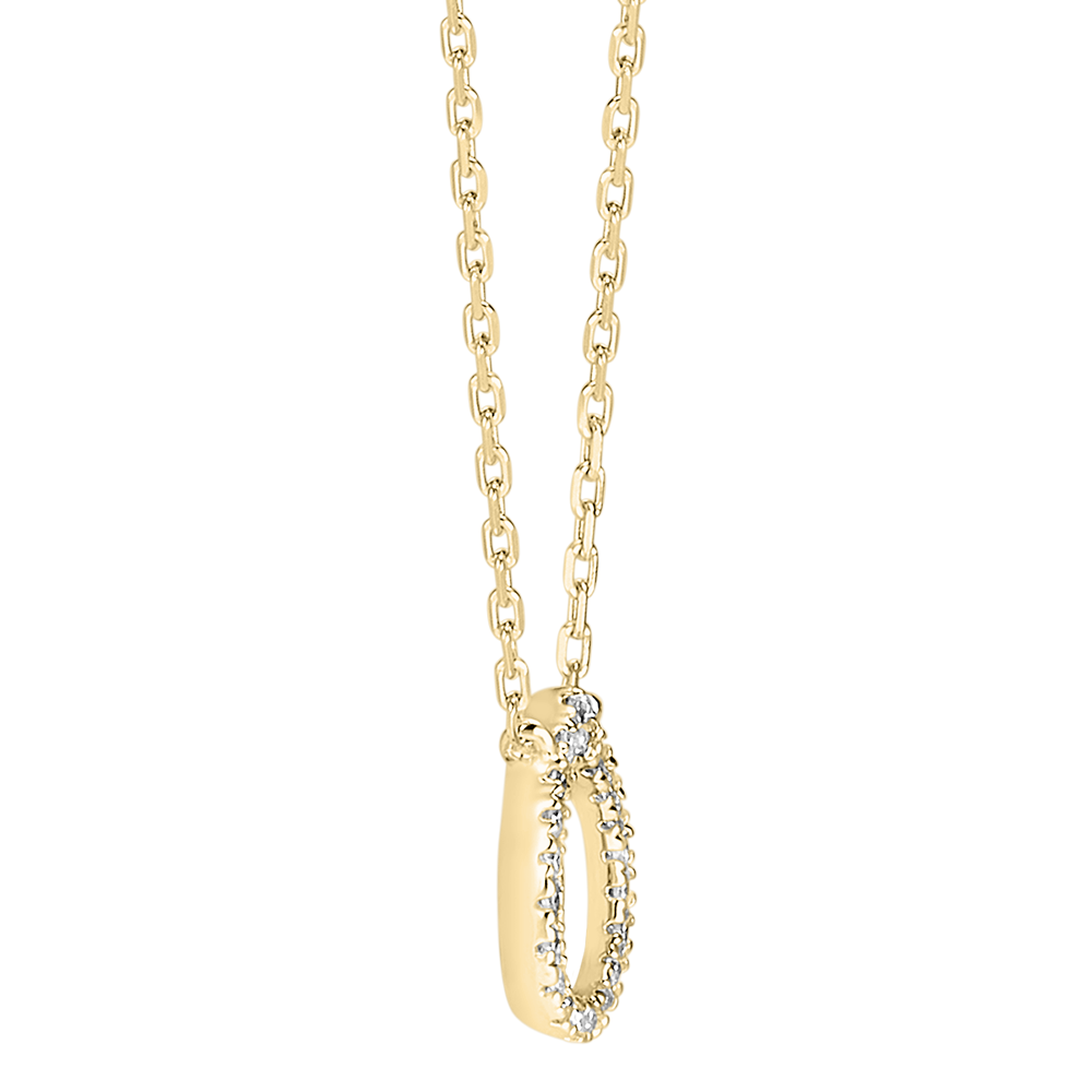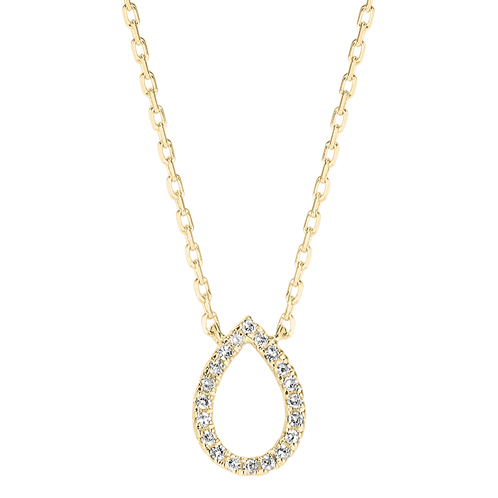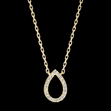 O picătură pavată delicat cu diamante, fixată pe un colier din aur galben, pentru un model pur, înclinat spre elemente și emoții.