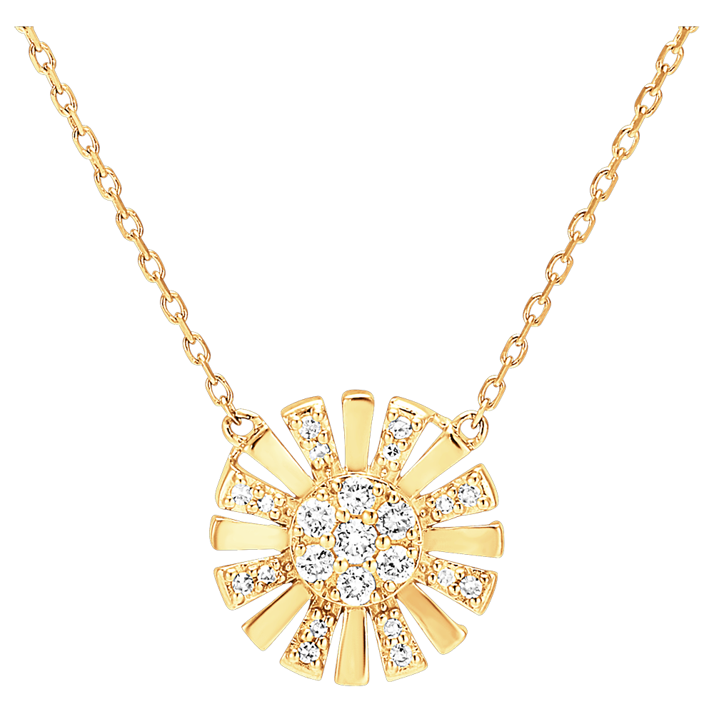 Soare strălucitor cu contururi scânteietoare, într-un colier elegant, rafinat, pur și simplu radiant.