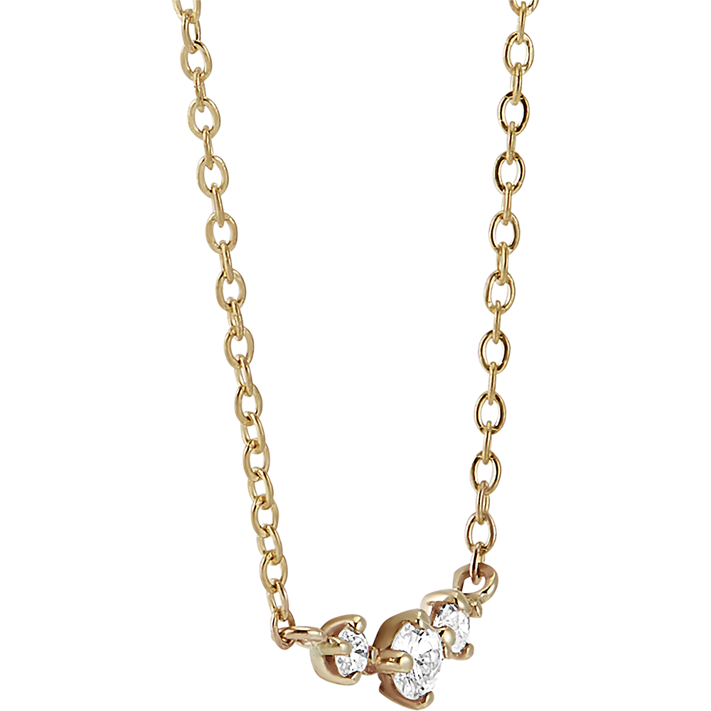 Un colier din aur galben încrustat cu 3 diamante - ca o constelație. O formă care este atât atemporală, cât și modernă.
