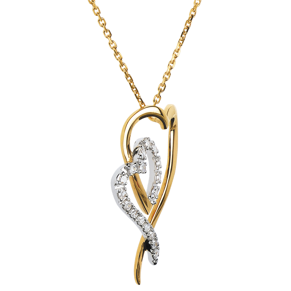 Un colier inimi în abis, din aur galben şi aur alb, semnat de un delicat pavaj de diamante.