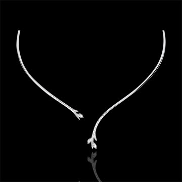 O ramură strălucitoare îngheţată în etern. Frunza sa preţioasă, diamant tăiat marquise, este subliniată de aurul alb încrustat cu briliante ce îi serveşte drept sipet.