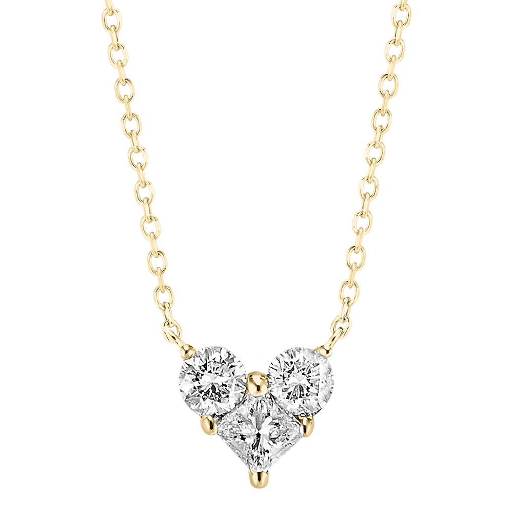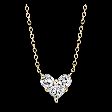 O inimă pavată cu 3 diamante așezate delicat pe un colier din aur galben. Acest simbol al bijuteriei este revizuit poetic de Edenly pentru cea mai intensă declarație de dragoste. Oh, lovely!