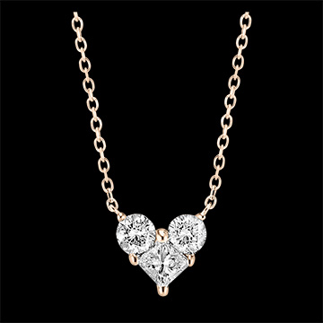 O inimă pavată cu 3 diamante așezate delicat pe un colier din aur roz. Acest simbol al bijuteriei este revizuit poetic de Edenly pentru cea mai intensă declarație de dragoste. Oh, lovely!