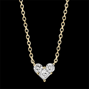 O inimioară pavată cu 3 diamante așezate delicat pe un colier de aur galben. Acest simbol al bijuteriei este revizuit poetic de Edenly pentru cea mai intensă declarație de dragoste. Oh, mini lovely!