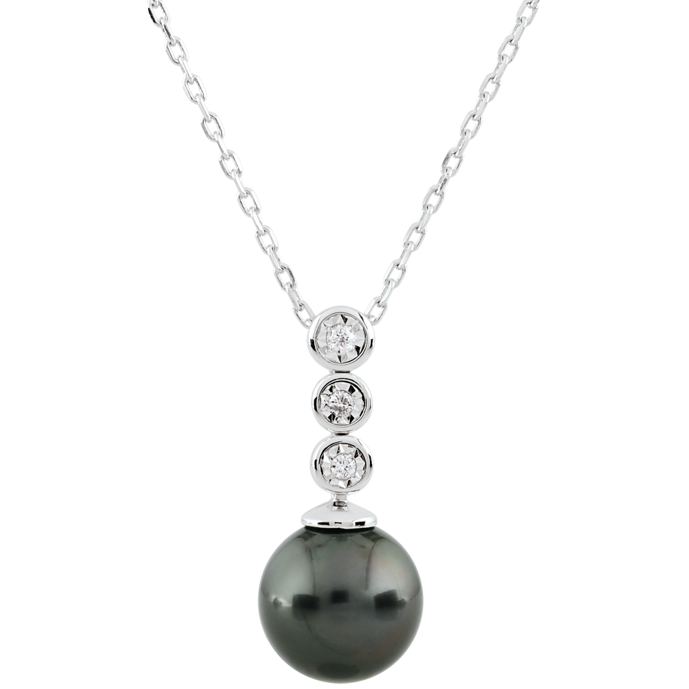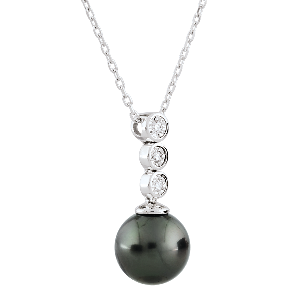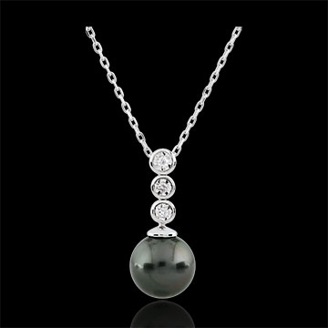 Colier Trilogie cu Perlă - 3 diamante - aur alb de 9K