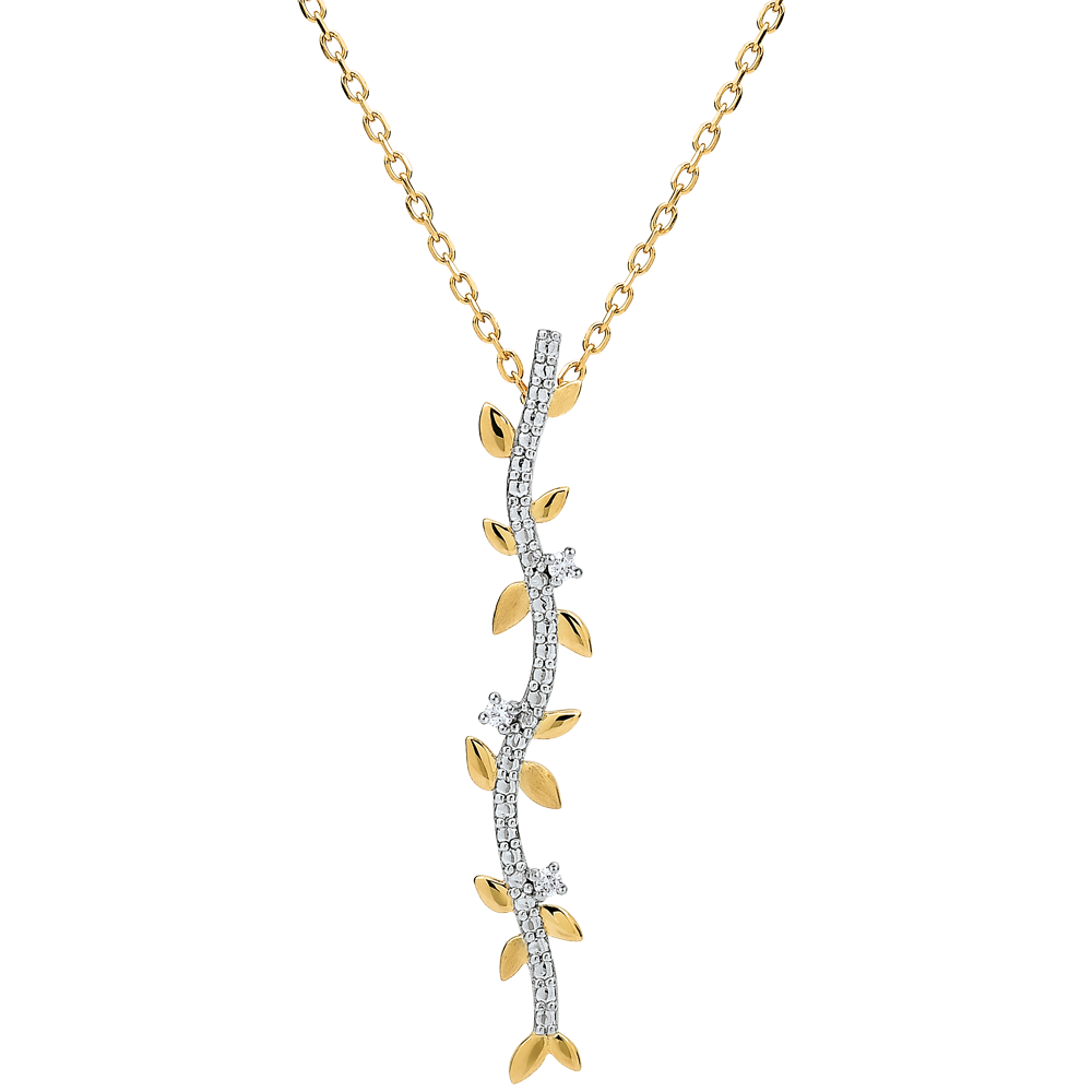 Frunze de aur galben strălucitoare şi frunze cu lustru periat manual se adună pentru a vă îmbrăca cu romantism decolteul.