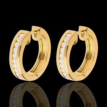 Creole din aur galben de 18K cu diamante - setare bară - 0.33 carate - 22 de diamante