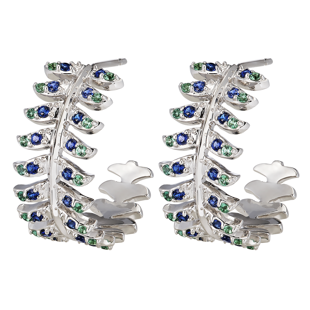 Creole Panache - Révérence - aur alb de 9 carate cu safire și smaralde sintetice