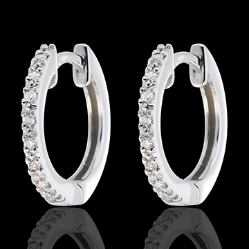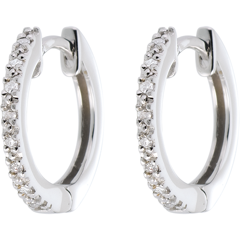 Creole semi pavate din aur alb de 9K - 16 diamante