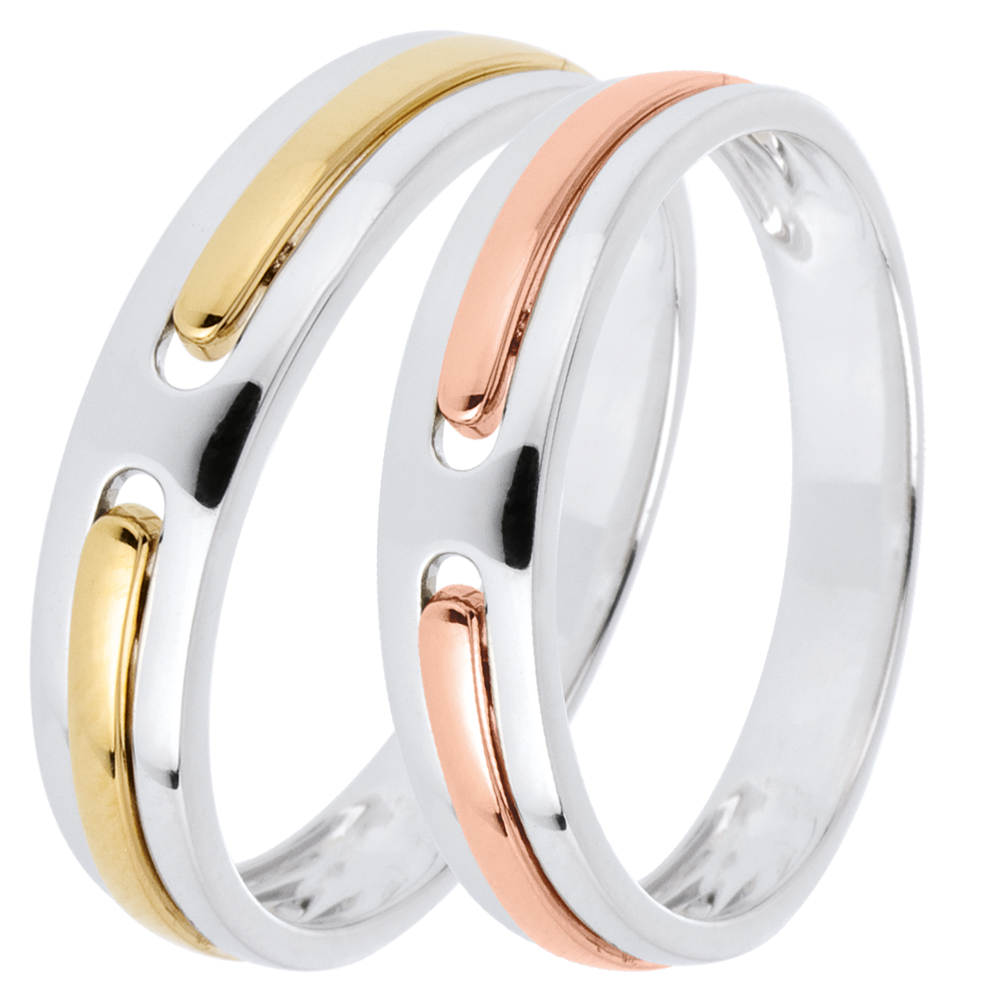 Două linii de aur roz unite ca într-o promisiune pentru eternitate într-un inel. Verighetă de aur pentru bărbaţi şi doamne.