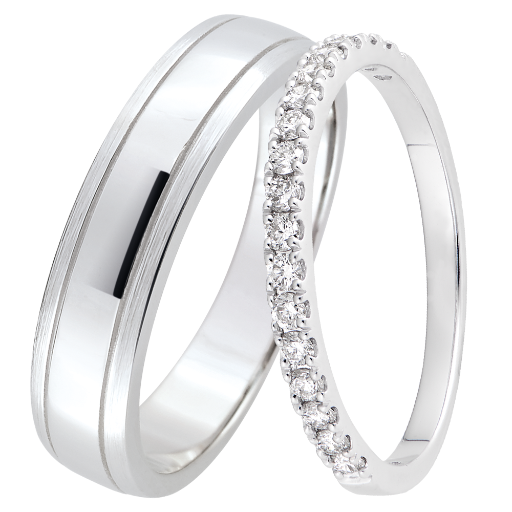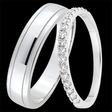 Duo de verighete Horizon & Bettina – aur alb & diamante – 9 carate